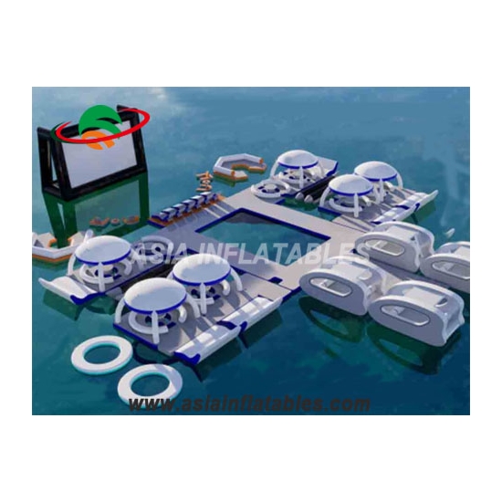 Diese schwimmende Inselplattform ist mit einer Matte, einem Tisch, Rückenlehnen, Liegen, einem Zeltunterstand, einem schwimmenden Dock usw. ausgestattet. Sie können die einzelnen Elemente selbst kombinieren.